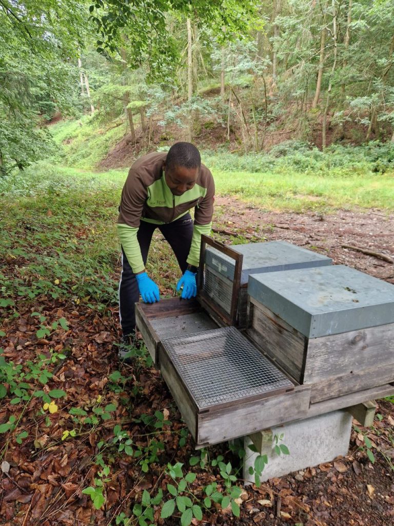 A major part of my experience was working on honeybee GLP studies, where I participated in acute toxicity tests on honeybee larvae and in field studies of bee colonies. I gained hands-on experience in brood assessment, colony development, behavioural, mortality, and foraging assessments, as well as comb photographic assessment using the Hiveanalyzer software, and a whole lot of documentation to evaluate brood termination rates. GLP studies on terrestrial invertebrates at RIFCON were equally interesting. I had the opportunity to work with the team assessing the effect of pesticides on earthworms (and collembola) from agricultural fields, not only in Germany but also in Hungary.