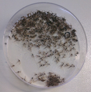 How does the sample preparation work: In October 2015 Anna Kästel prepared chironomid samples gained in a field study in Geinsheim (near Neustadt/Weinstraße) in the year 2013. As first step the adult chironomids that were preserved in 70 % ethanol had to be dried and grounded to fine powder. As extraction method a bulk DNA extraction with a high salt extraction was conducted. After RNAse treatment and clean up the samples were ready for a travel to Essen.