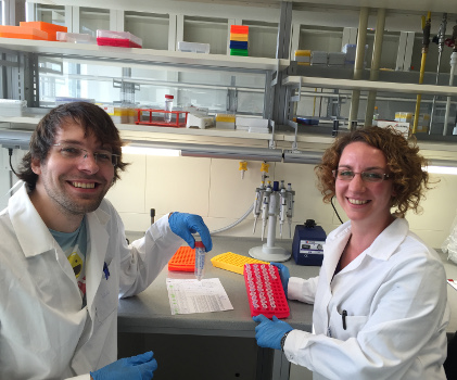 Vasco Elbrecht and Anna Kästel in the lab in Essen. Two weeks to prepare one small tube with all the DNA of about 2000 chironomid specimens! (photo by V. Elbrecht)